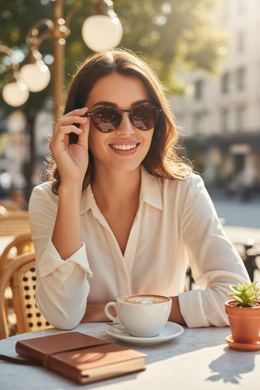 Seu design leve e contemporâneo valoriza o rosto, enquanto suas lentes amplas trazem um visual elegante, sofisticado e extremamente atual.